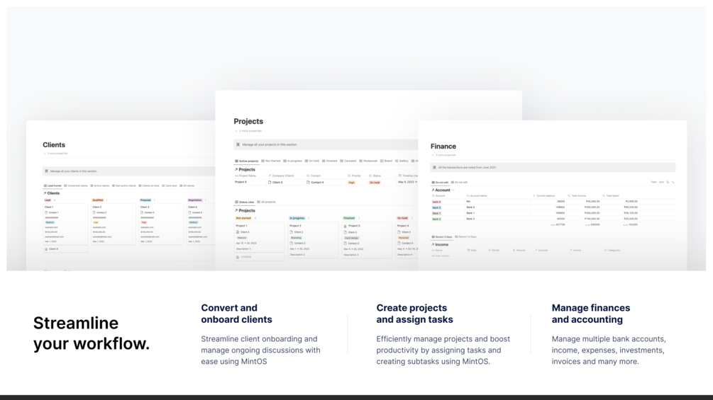 It streamlines workflow, manages clients and projects efficiently, and improves communication with your team. With MintOS, managing your projects will be a breeze.