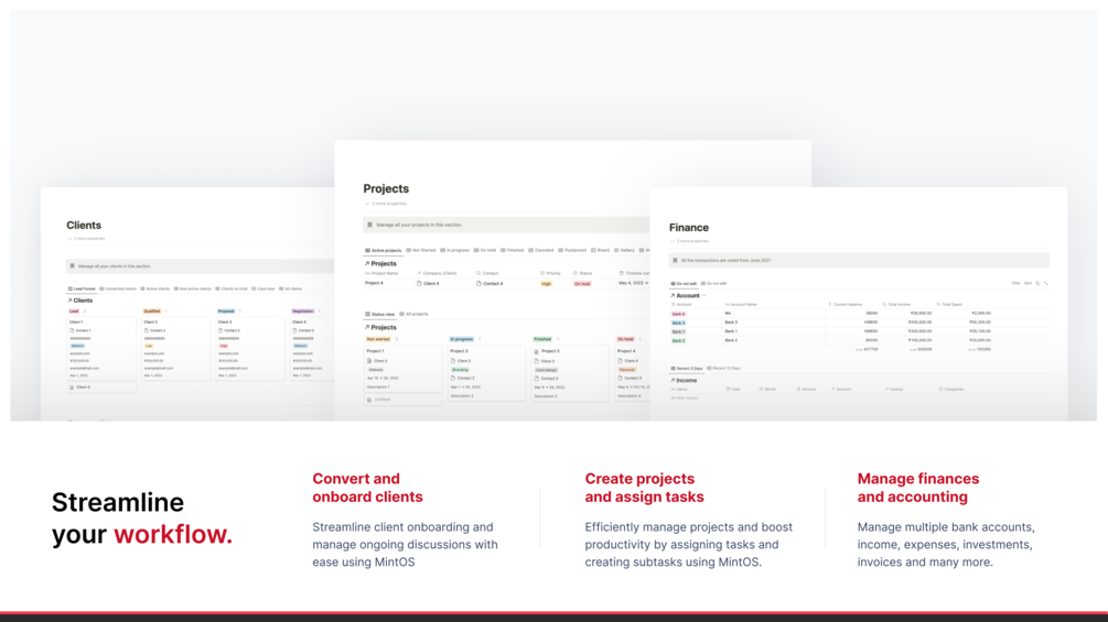 Unleash the power of organization and efficiency with our specially designed project management template on Notion. From task tracking to client management and project finances, this template has everything you need to take your projects to the next level. Say goodbye to cluttered spreadsheets and disorganized notes, and hello to streamlined success.